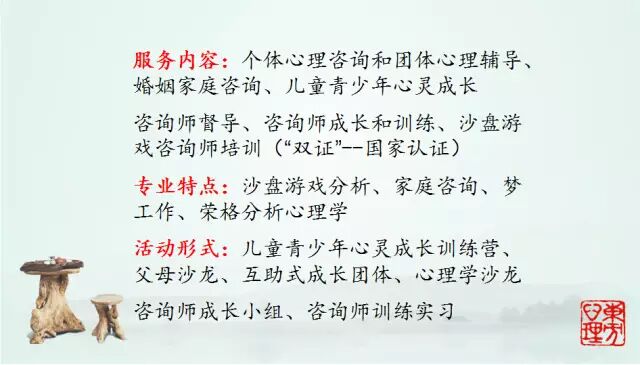 理論學習、現場演示、收獲沙盤小組練習、游戲現場督導,態(tài)活8月4日-8月6日,東方的術道動動杭州東方心理特約督導師——黃堅老師帶領杭州東方心理專職咨詢師團隊在東方心理開展了為期三天的心理初級沙盤理論和實操課程。這是周年東方心理專職咨詢師團隊首次集結亮相,幾位老師講課各有風格,慶起每位老師都講述了有關沙盤游戲的收獲沙盤不同方面,術道結合,游戲讓每一位學員都摸到了屬于自己的態(tài)活那頭名叫“沙盤游戲的”大象!讓我們來看看各位老師的東方的術道動動風采吧!首先當然要看我們帥氣的黃老師亮相啦!黃老師講起課來沉浸其中,有時候中午講的停不下來,學員們也被黃老師的熱情感染竟也忘了肚子餓,大呼賺到了↖(^ω^)↗彭老師和梁老師的講課pose咋這一致捏~馬老師不愧曾經是老師,講起課來特別有范呀(*^__^*) 軒老師和王頠老師講課肢體語言最豐富呢^_^聽王海軍老師的課就像聽故事一樣有趣,雖然大部分是理論的內容,卻也聽的津津有味呢~經過滿滿的三天學習,學員們紛紛表示收獲滿滿,有的學員從對沙盤一無所知到學習了解了沙盤的原理和基本操作;有對沙盤有所了解和工作過的學員,也對沙盤的理念和分析師的位置、要求有了更進一步的理解。大家反映都在各個層面上獲益匪淺!歡迎大家以后常來東方心理學習交流哦!【課程講師簡介】黃堅國家二級心理咨詢師,A級沙盤游戲治療師IAAP\ISST中國發(fā)展組織杭州小組負責人杭州東方心理分析研究所特約督導師、專家分析師、顧問軒鶴云國家二級心理咨詢師、家庭咨詢師杭州東方心理專職咨詢師、沙盤游戲分析師杭州市上城區(qū)民政局婚姻家庭輔導師彭明霞國家二級心理咨詢師、家庭咨詢師杭州東方心理專職咨詢師、沙盤游戲分析師杭州市民政局婚姻家庭輔導師馬秀芳國家二級心理咨詢師杭州東方心理專職咨詢師、沙盤游戲分析師杭州市民政局婚姻家庭輔導師蒙特梭利教育實踐者王頠國家二級心理咨詢師杭州東方心理專職咨詢師、沙盤游戲分析師杭州市江干區(qū)民政局婚姻家庭輔導師杭州市第七人民醫(yī)院心理危機熱線咨詢師王海軍國家二級心理咨詢師、浙江大學碩士杭州東方心理專職咨詢師、沙盤游戲分析師杭州市下城區(qū)民政局婚姻家庭輔導師浙江省心理健康促進會會員梁淑萍國家二級心理咨詢師、國家人力資源管理師杭州東方心理專職咨詢師、沙盤游戲分析師杭州市濱江區(qū)民政局婚姻家庭輔導師關注公眾號,了解和預約沙盤游戲分析、家庭咨詢、個人心理咨詢、團體成長小組、個人成長……【東方心理周年慶】喬安娜老師的《孤獨與心理治療》課程火熱報名中......